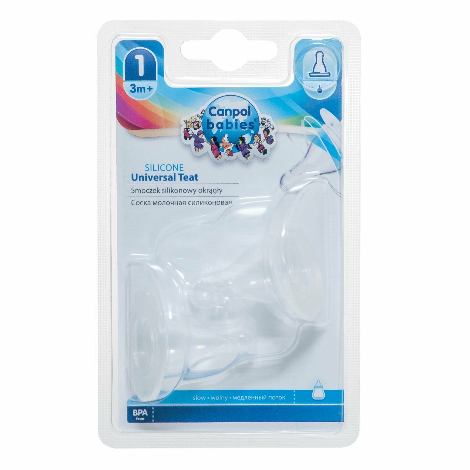 Соска Canpol Babies Силиконовая круглая №1, медленный поток 3м+, 2 шт. бесцветный