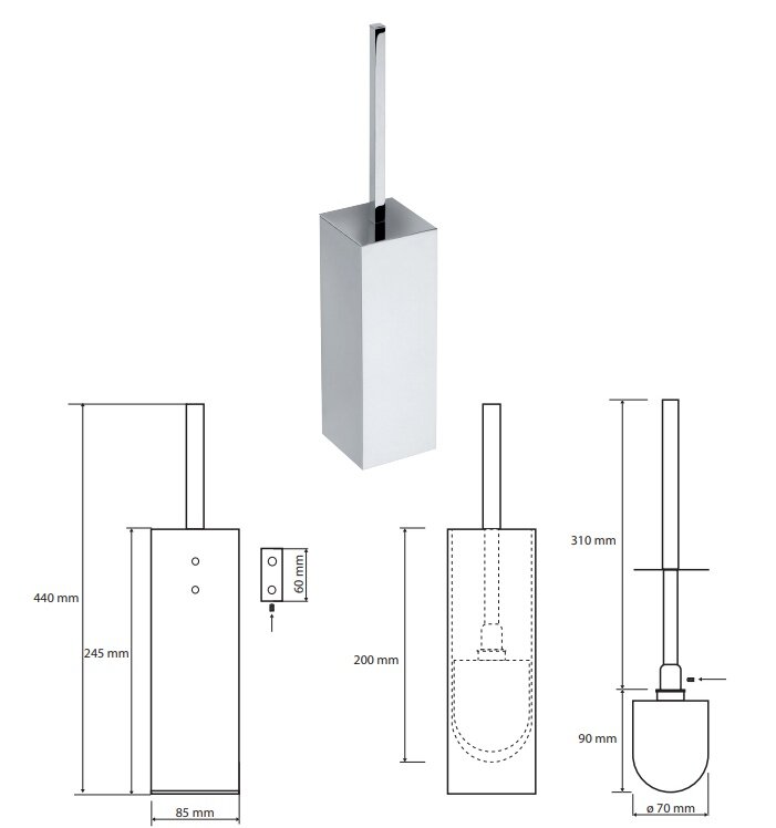 Стойка с туалетной щеткой Bemeta Plaza напольный/подвесной 85x440x85мм, хром 118113092