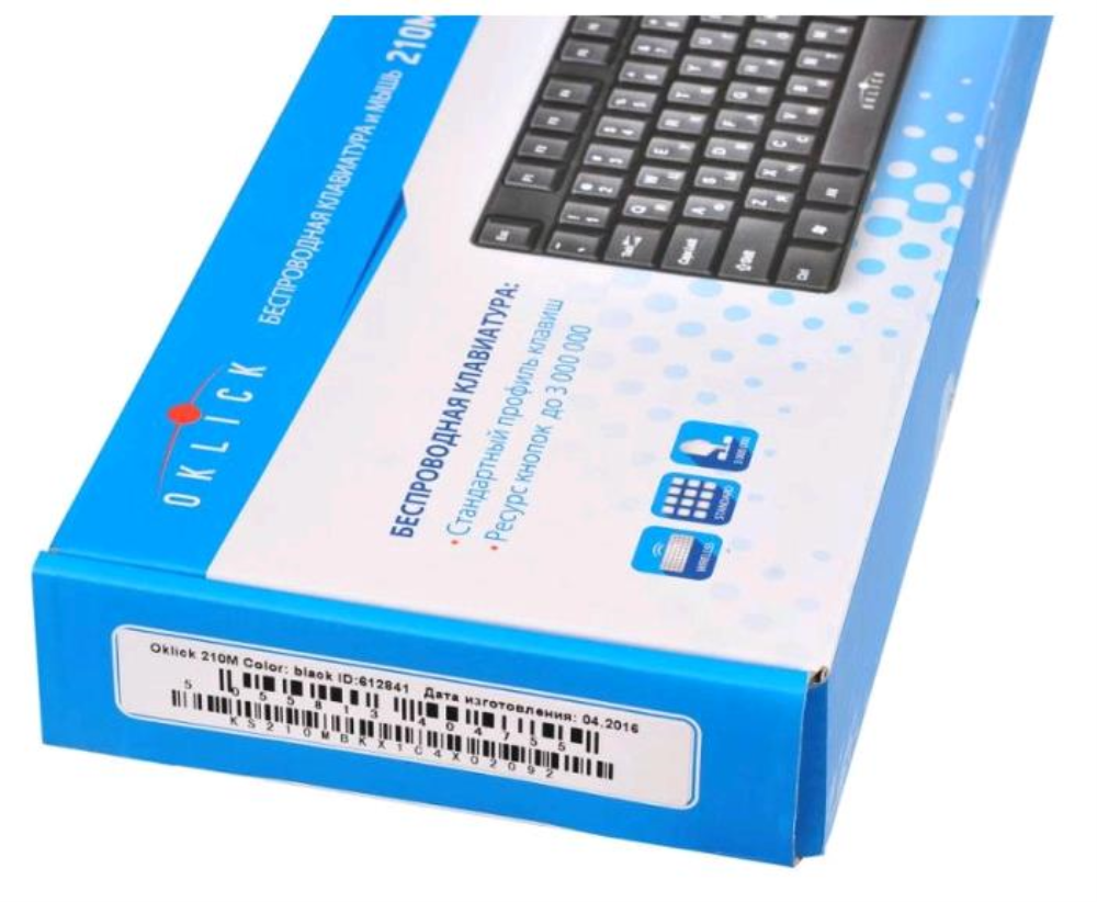 Компьютерный набор Oklick клавиатура, мышь, "210m", черный, usb, беспроводной