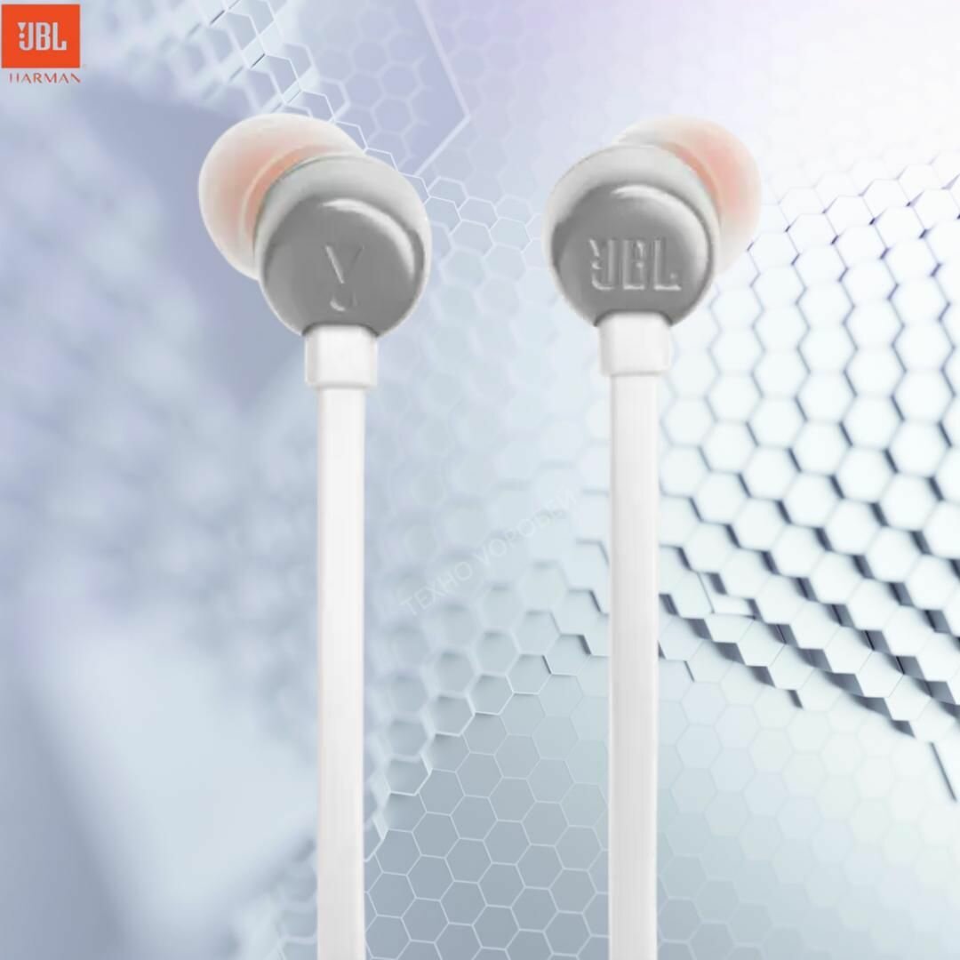 Наушники проводные с микрофоном JBL T205, проводная гарнитура, white silver