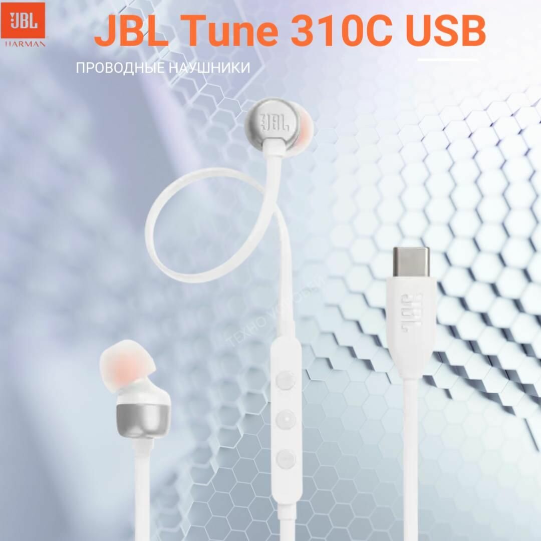 Купить JBL Tune 310С USB Проводные внутриканальные наушники, белый
