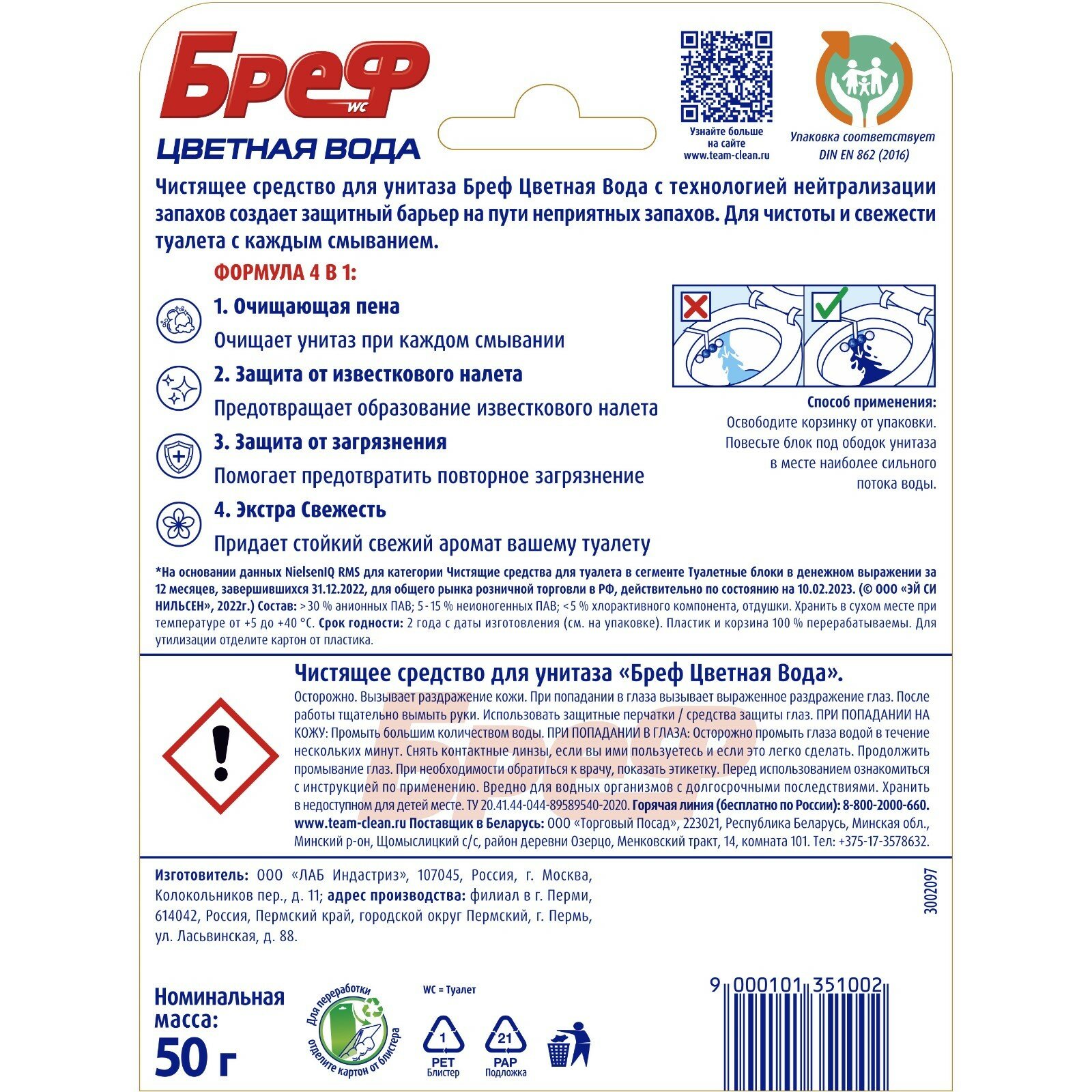 Подвеска для унитаза 4 шт. х 50 г Бреф Цветочная, универсальное средство для чистки туалета от налета микробов и бактерий, санитарная защита, дезинфекция, гигиена