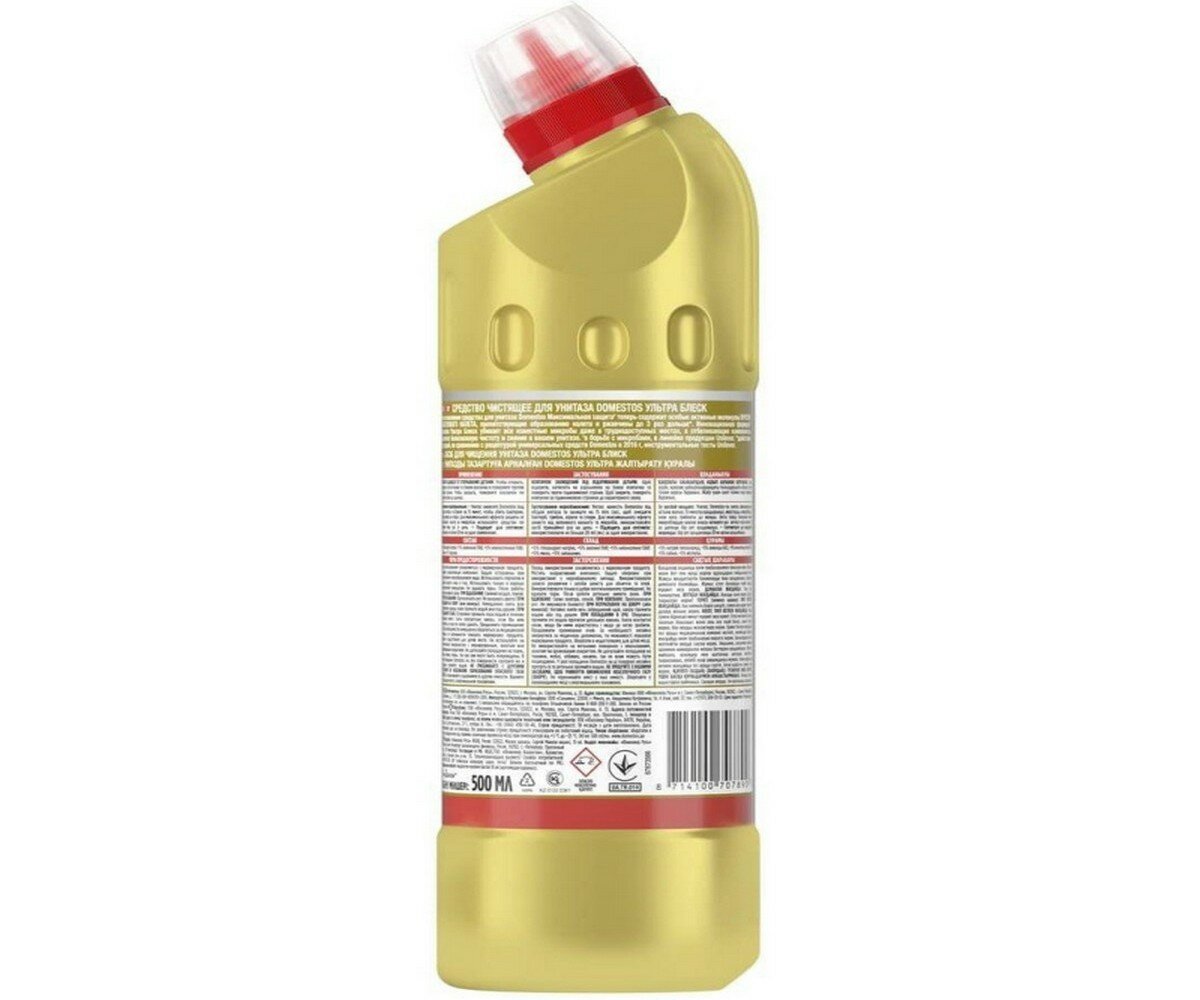 Domestos Ультра Блеск, чистящее средство для туалета, эффективное отбеливание, 500 мл