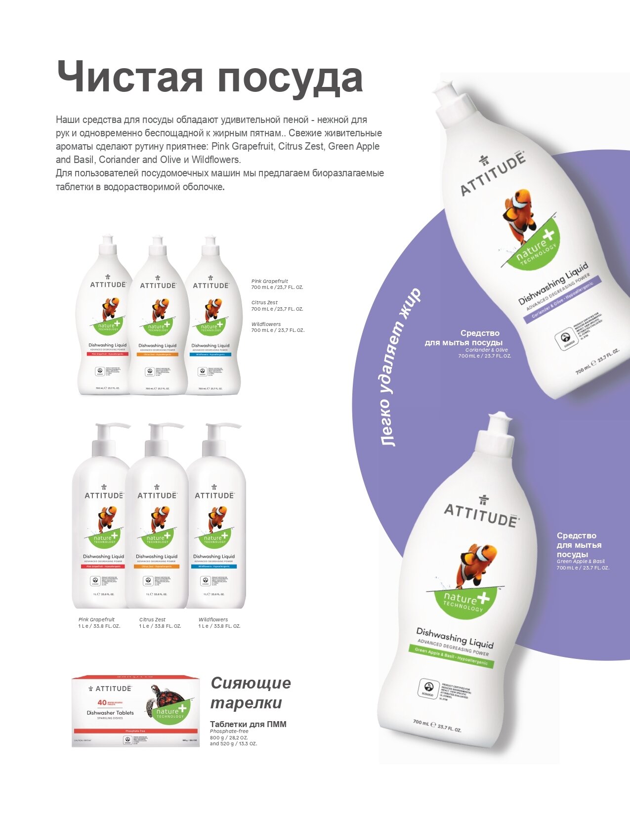 ATTITUDE Средство для мытья посуды гипоаллергенное без запаха