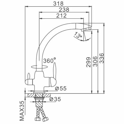 | Плюсы: | Регулировка воды, в одном кране вода фильтрованная, это преимущество, большой кран, и не брызгает, но желательно под большую и глубокую мойку. |