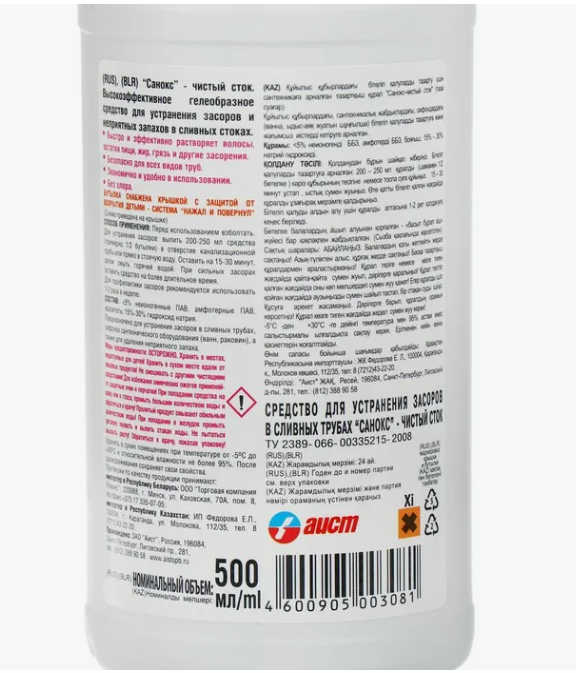 Аист Средство для устранения засоров Санокс "Чистый сток", 500 мл