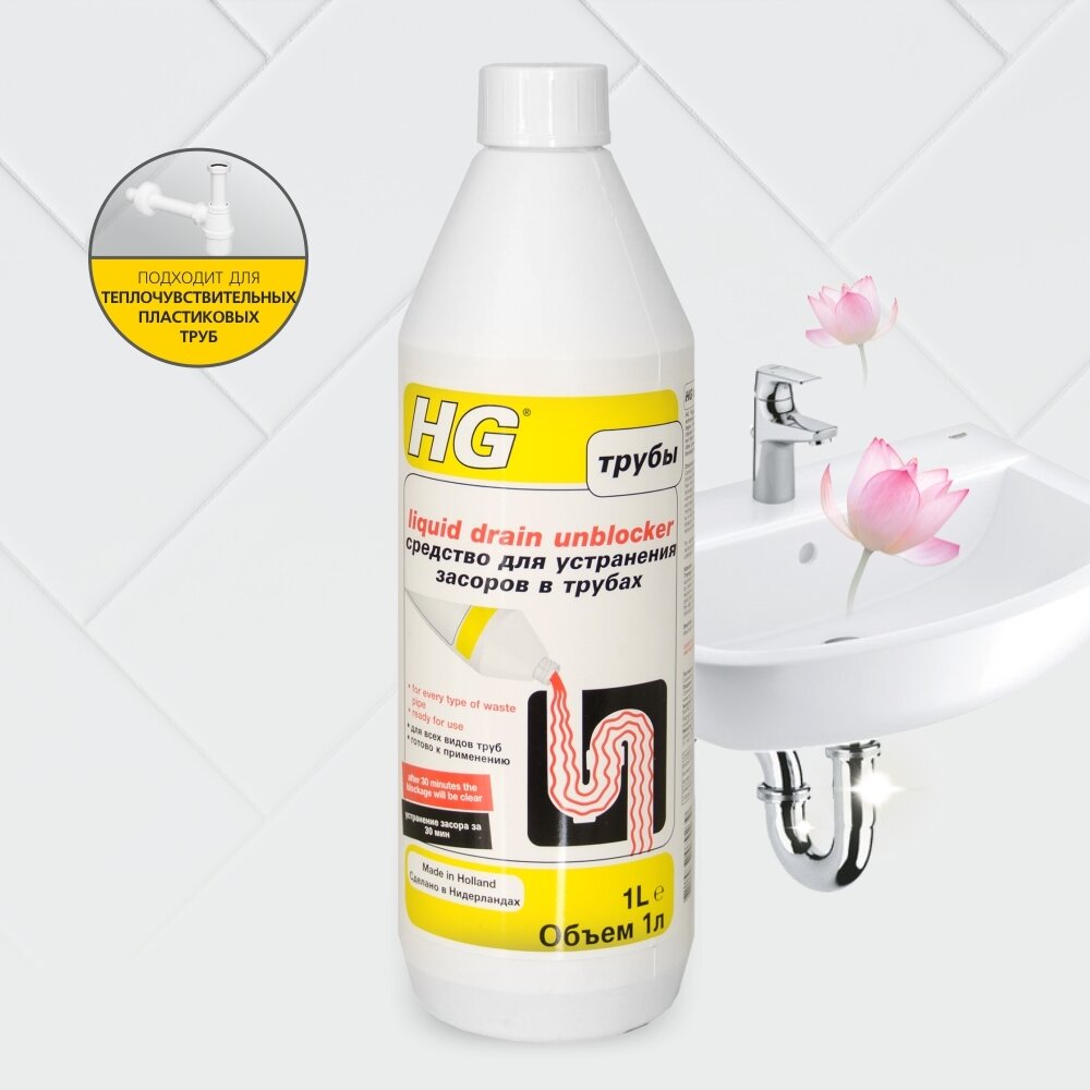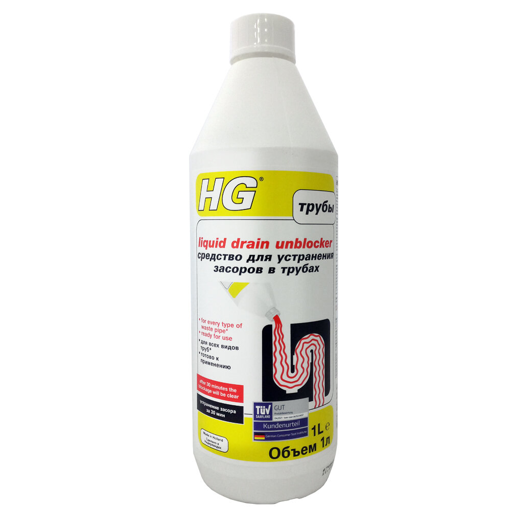 Чистящее средство HG для устранения засоров в трубах, 1 л