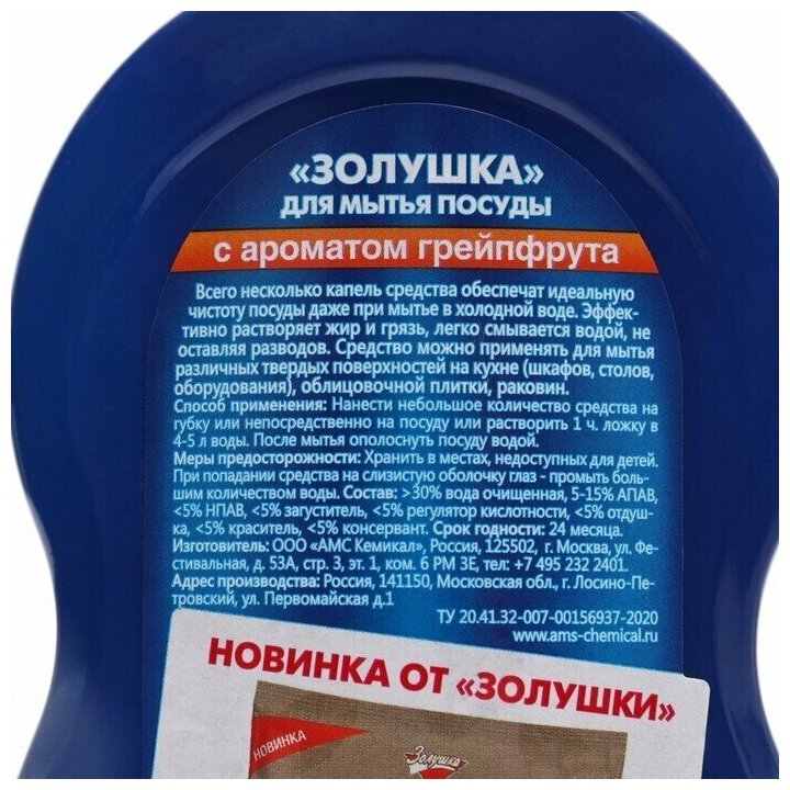 Золушка средство для мытья посуды 750мл. Грейпфрут