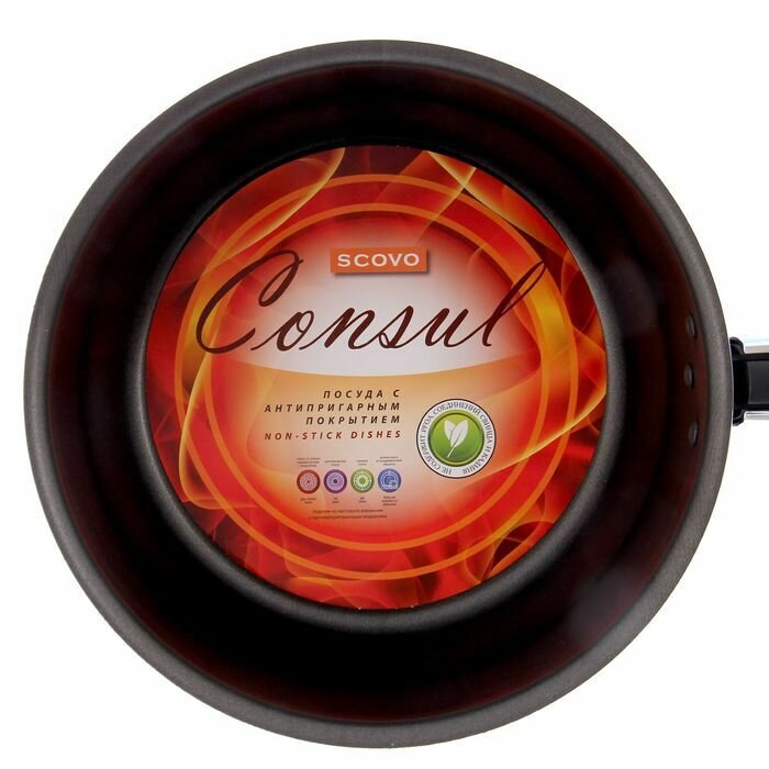 Купить SCOVO Ковш Consul, 2,7 л, стеклянная крышка, пластиковая ручка, антипригарное покрытие, цвет чёрный