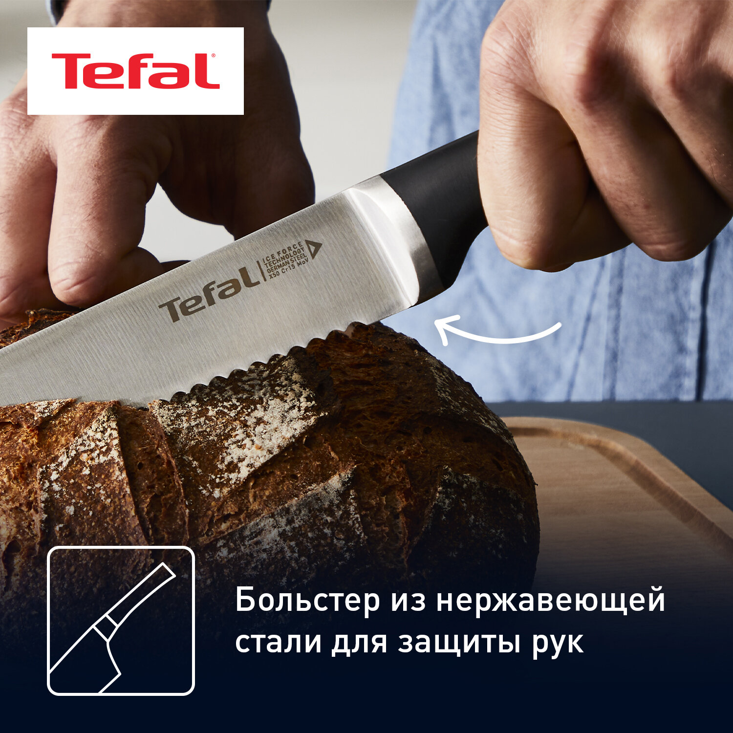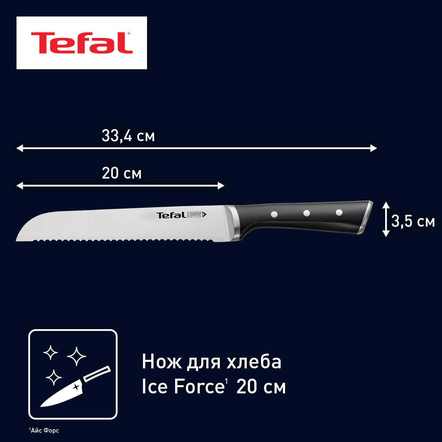 Нож Tefal Ice Force для хлеба 20 см (K2320414) интересное:
