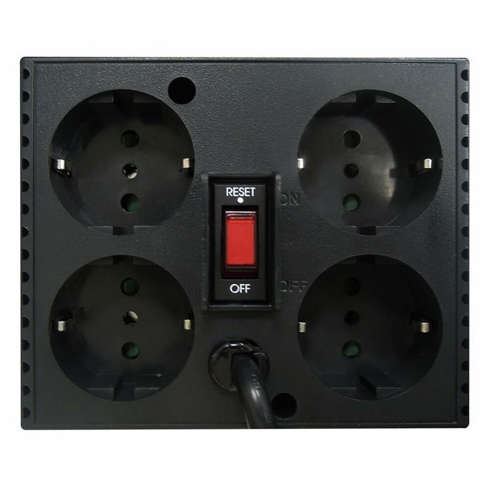| Плюсы: | Релейный стабилизатор, 600 Вт активной мощности, 4 розетки на вход. |