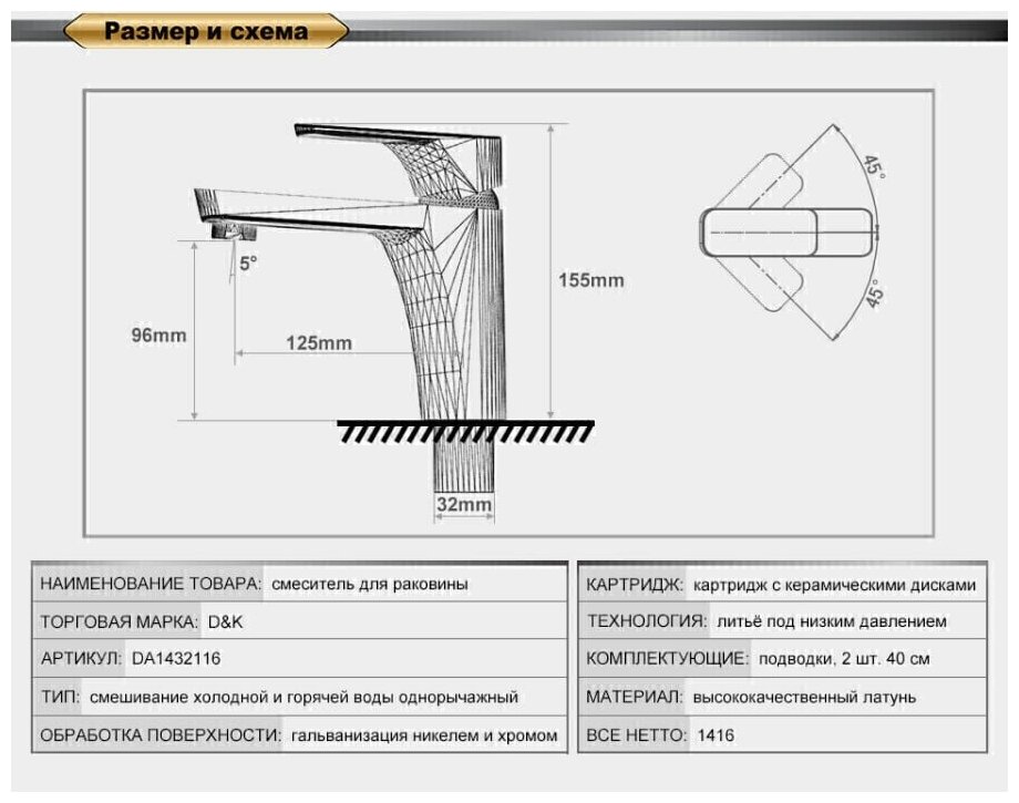 D&K Смеситель для раковины D&K Berlin Technishe DA1432115