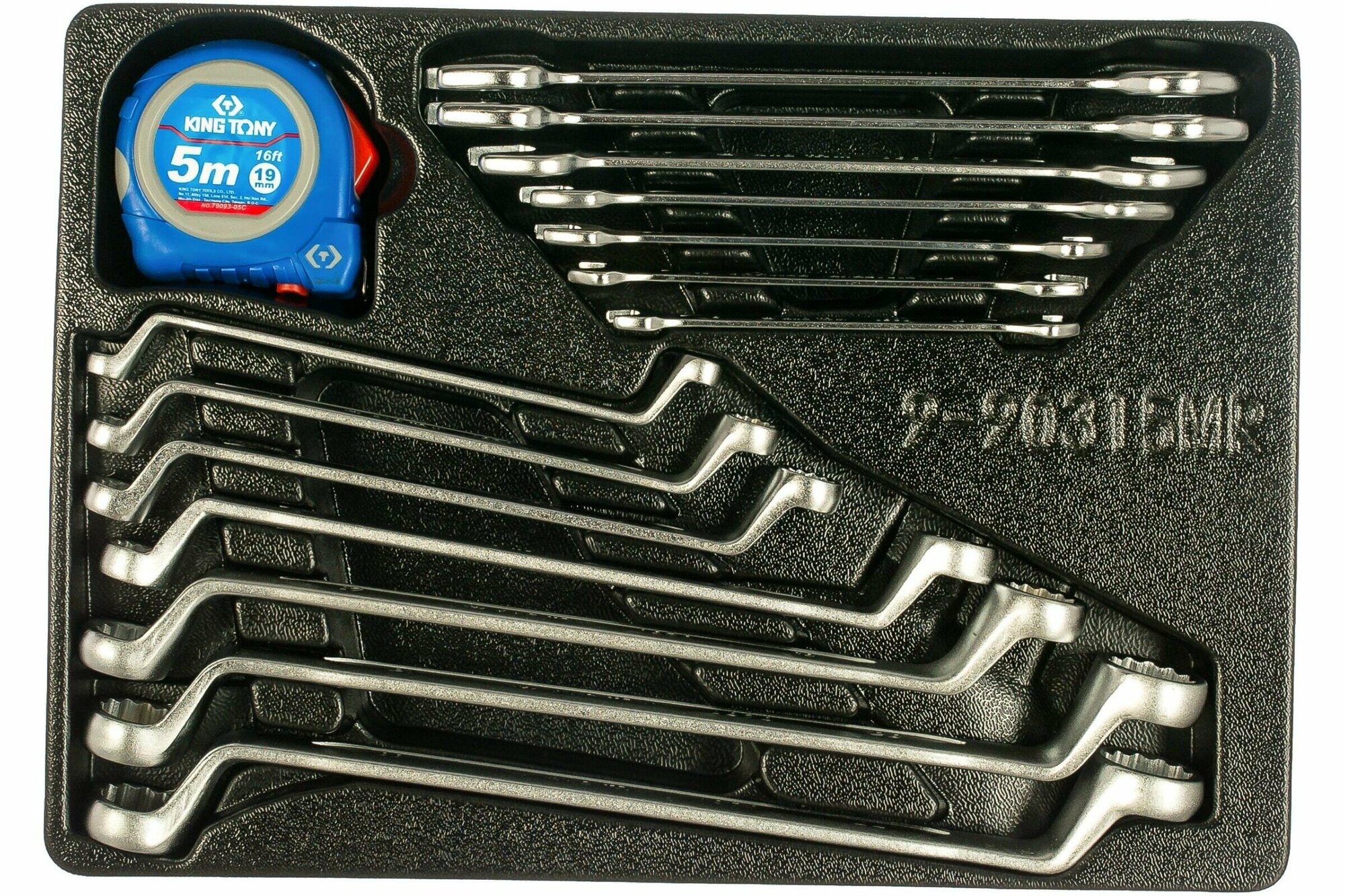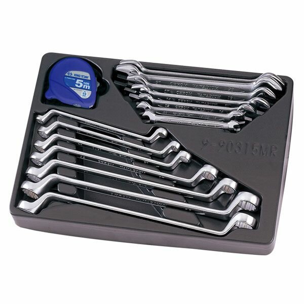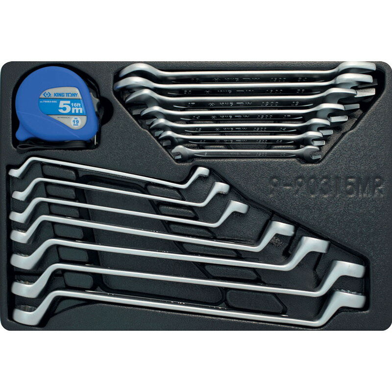9-90315MR Набор накидных и рожковых ключей, рулетка, ложемент, 15 предметов KING TONY 9-90315MR