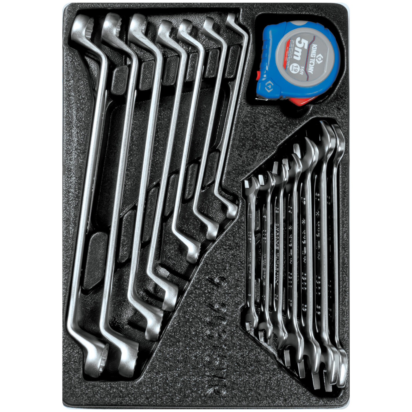 Купить KING TONY Набор накидных и рожковых ключей, рулетка, ложемент, 15 предметов