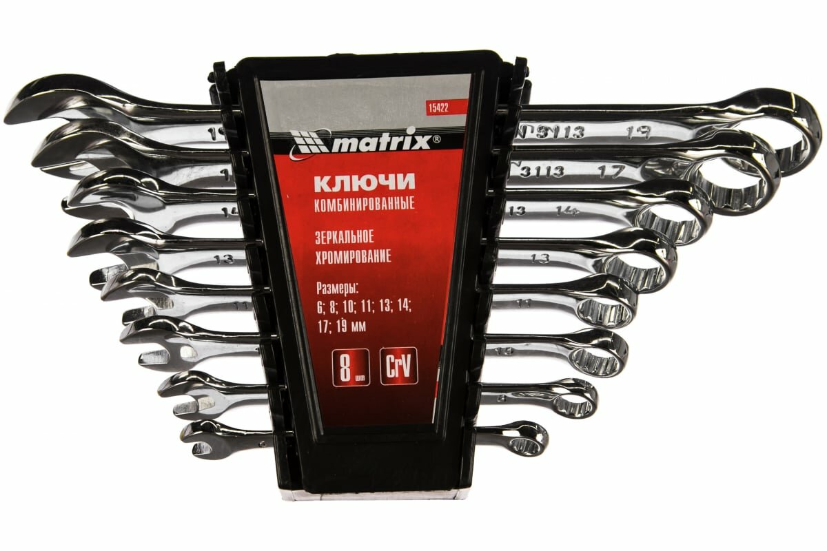 Набор ключей комбинированных, 6-19 мм, 8 шт, CrV, полированный хром Matrix ( 15422 )