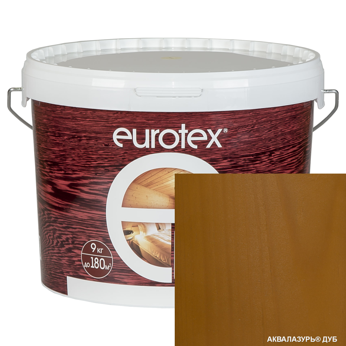 Антисептик Eurotex Аквалазурь 9кг Дуб Акриловый для Внутренних и Наружных Работ / Евротекс Аквалазурь.