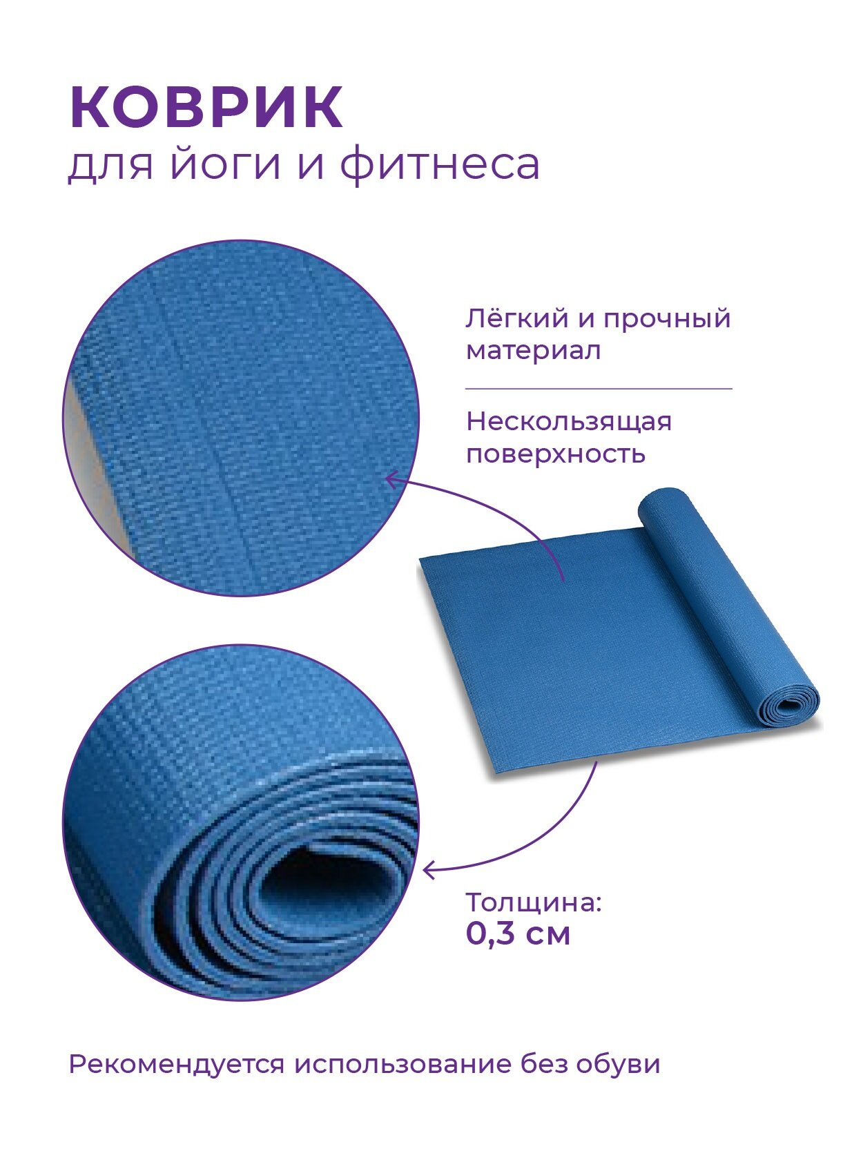 Коврик для йоги и фитнеса YG03 INDIGO PVC Синий 173*61*0,3 см интересное: