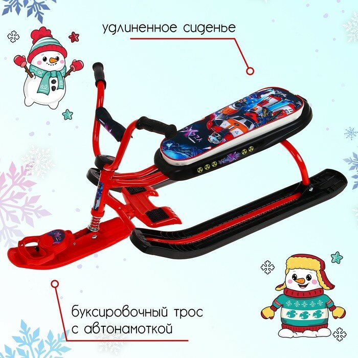 Снегокат детский Ника "Ника джамп", СНД1 граффити на красном, удлиненное сидение, велоруль, до 100 кг