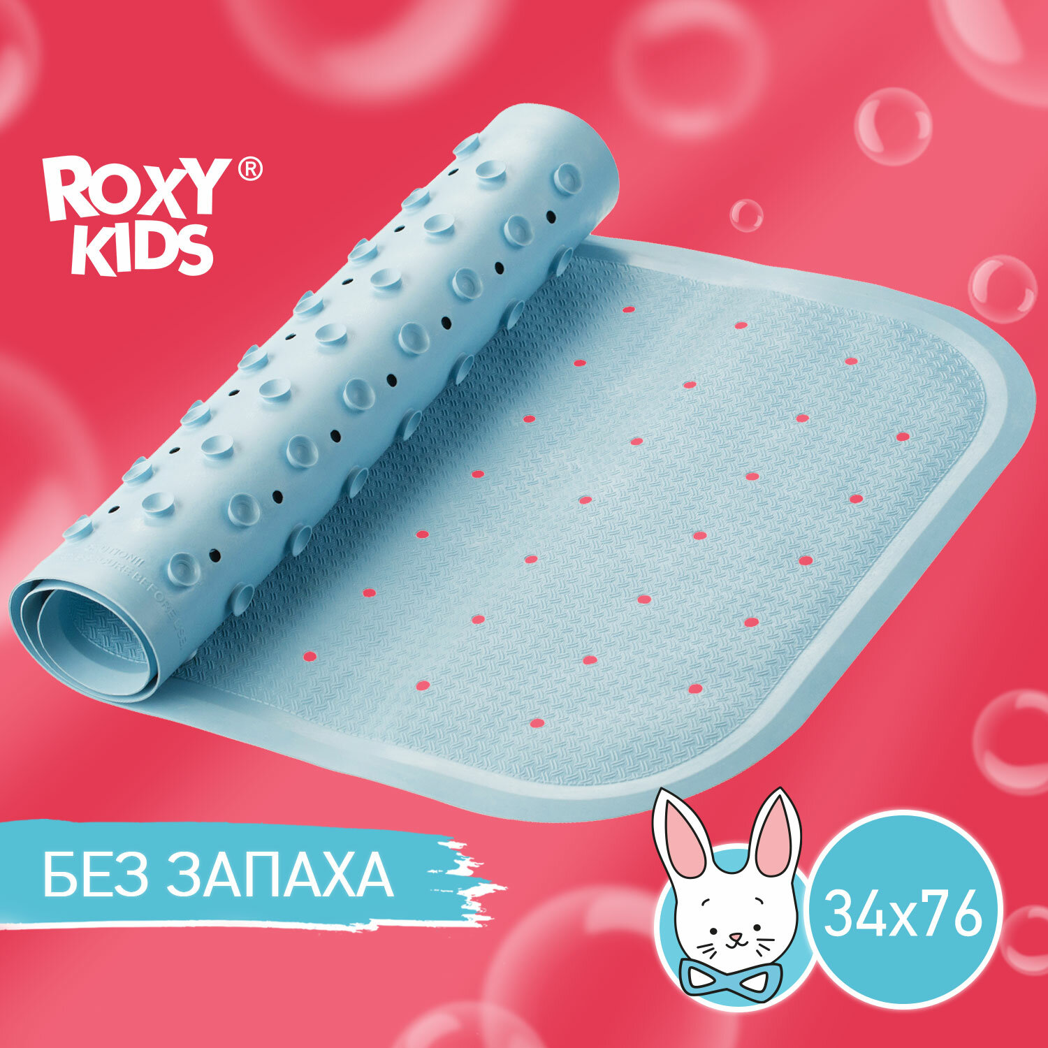Коврик резиновый антискользящий для ванны Roxy-kids ROXY KIDS, 34,5х76 см, голубой