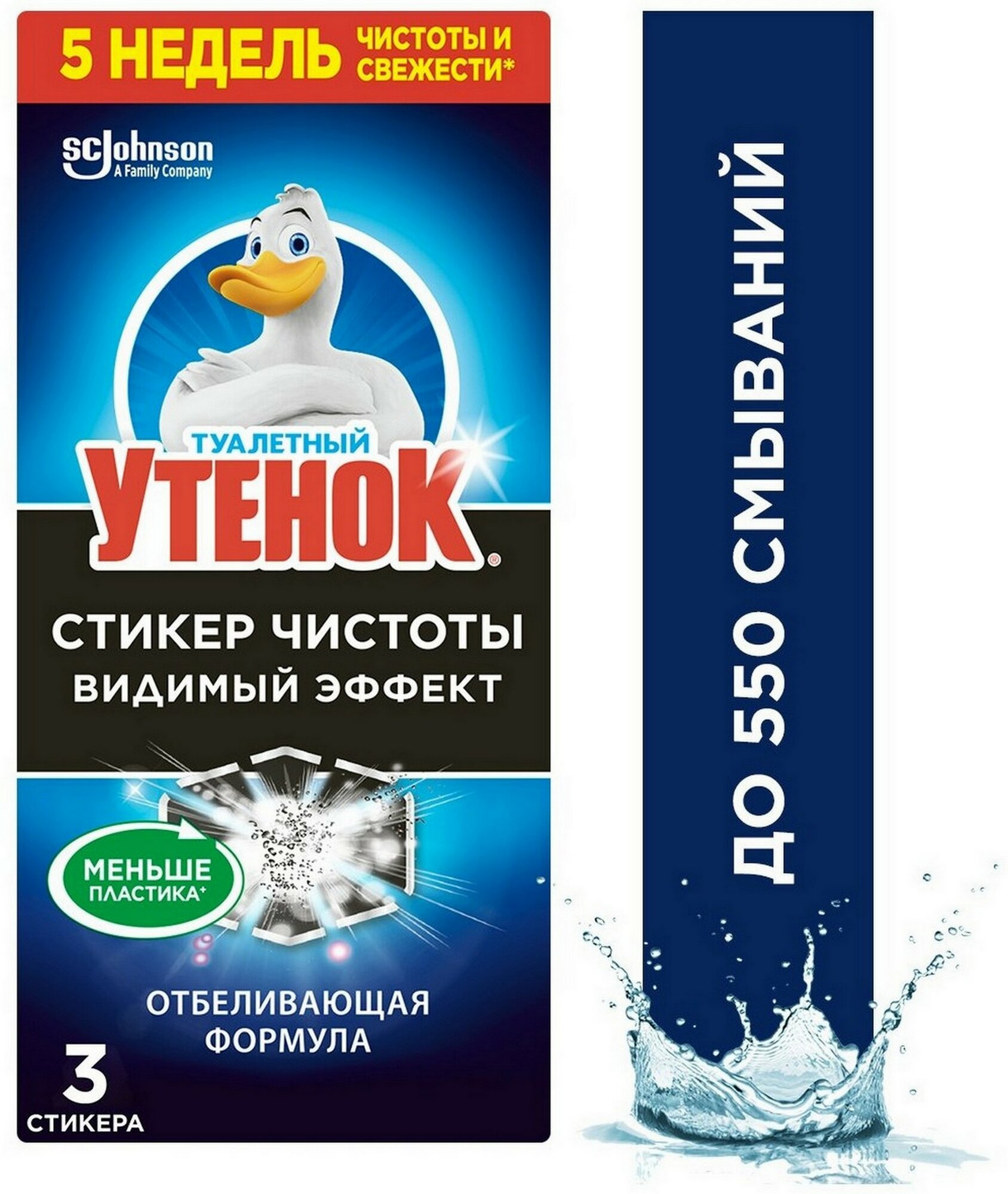 Очиститель унитаза Туалетный Утенок Стикер чистоты Видимый эффект, 3 шт