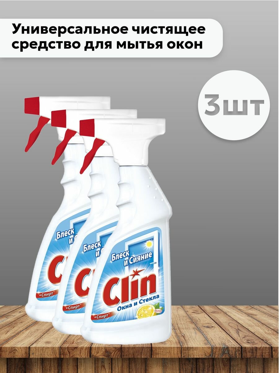 Clin Средство для мытья стекол и поверхностей 3 в 1 Лимон, 500 мл, 3 шт