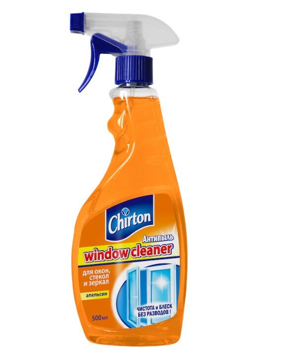 Средство для мытья стекол, зеркал и окон CHIRTON "Апельсин" антипыль без разводов, 500 мл