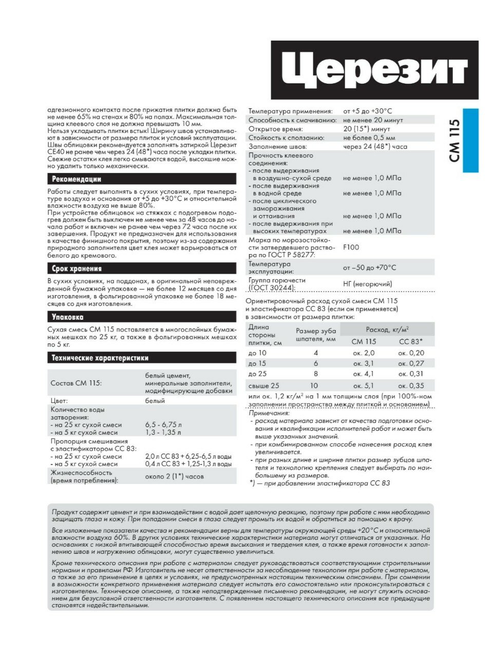 Церезит СМ 115, цвет белый, фасовка 25 кг