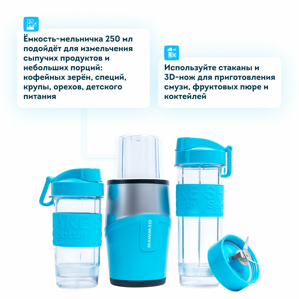 Портативный блендер для смузи и коктейлей, персональный мини блендер и кухонный комбайн 500 вт, богатый комплект - RAWMID Dream mini BDM-07 интересное: