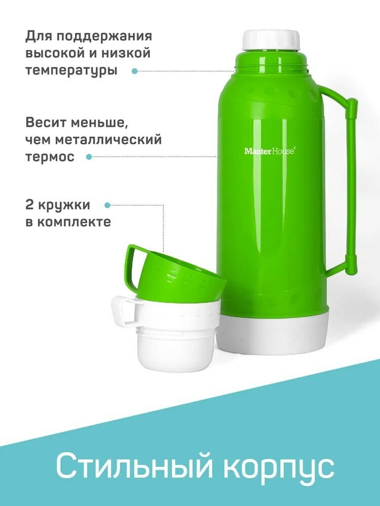 Термос Венеция стекл. колба/пластик узкое горло, 2л, чашки 2шт, зеленый, арт.60271 Master House (арт. 582657)