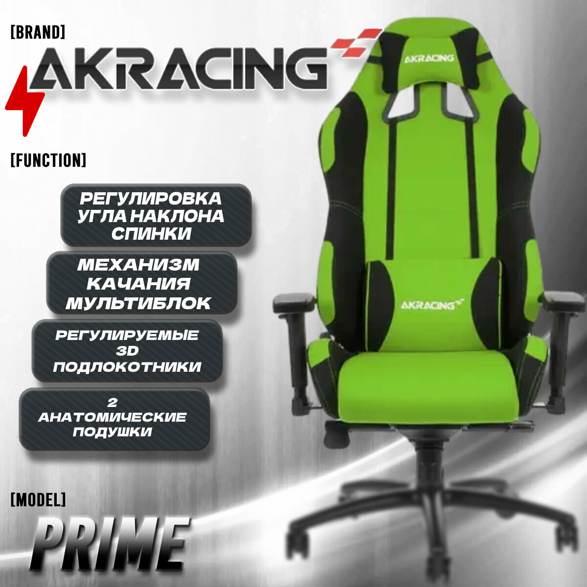 Компьютерное кресло AKRACING Prime игровое, обивка: текстиль, цвет: black/green