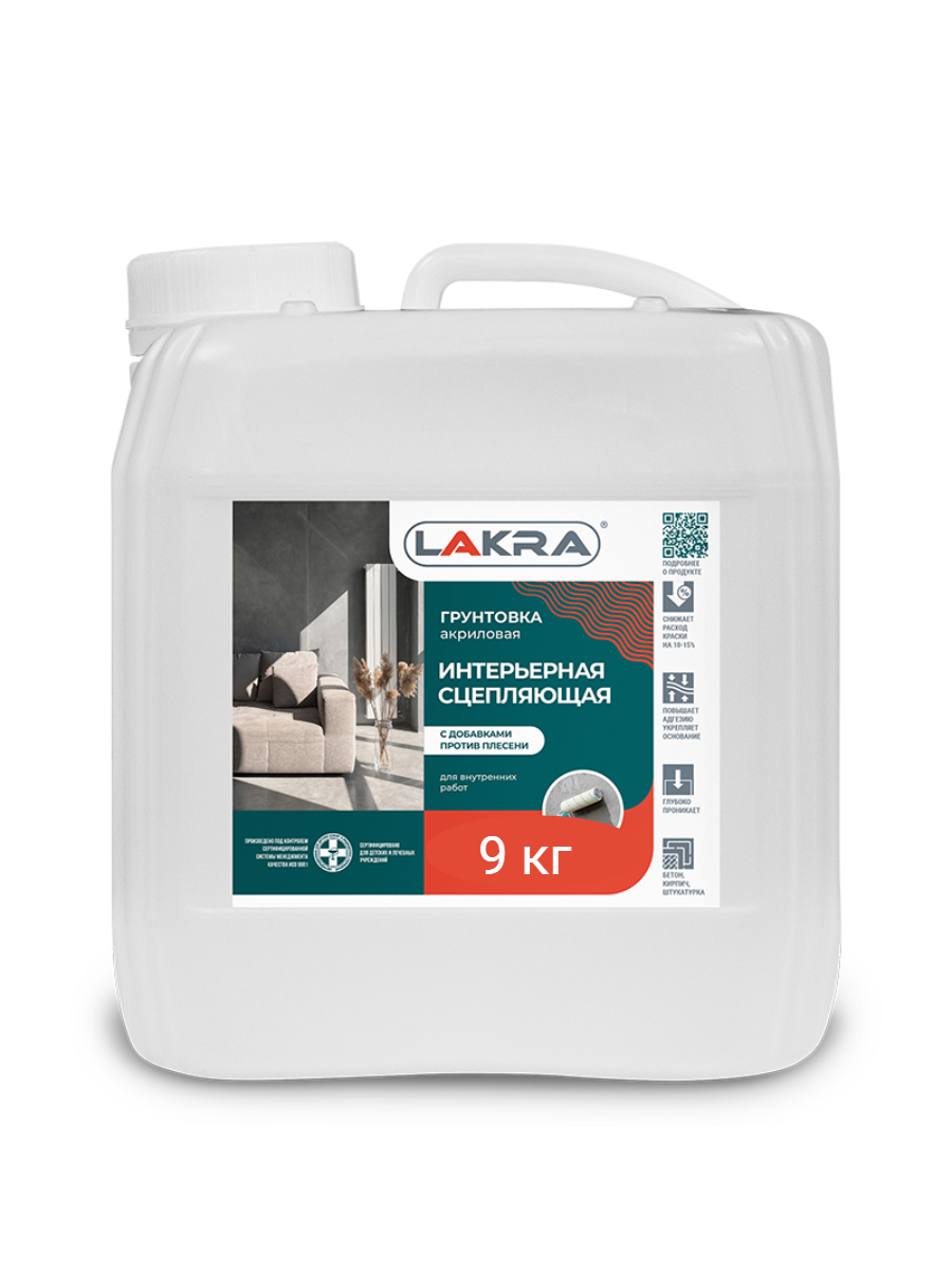 Грунт интерьерн.сцепляющий против плесени 9кг (Лакра)