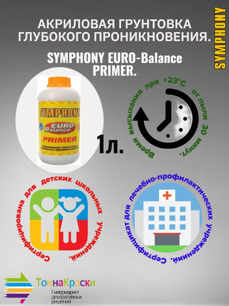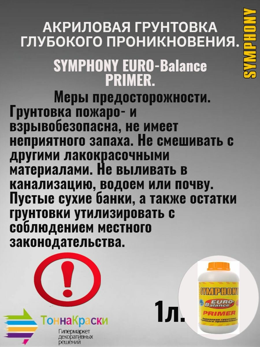 СохранитьГрунтовка Глубокого Проникновения Финкраска Symphony Euro-Balance Primer 1л Акриловая с Антисептиком / Симфония Евро-Баланс Праймер. интересное: