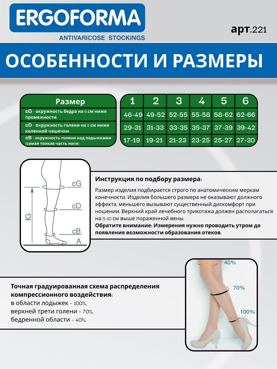 СохранитьКомпрессионные чулки Ergoforma 221, 2 класс, телесные, размер 2 интересное: