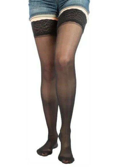 При этом выглядят как обычные современные женские чулки на красивой ажурной резинке. Причем, резинка с силиконом отлично держит на ноге, чулки не соскальзывают. |