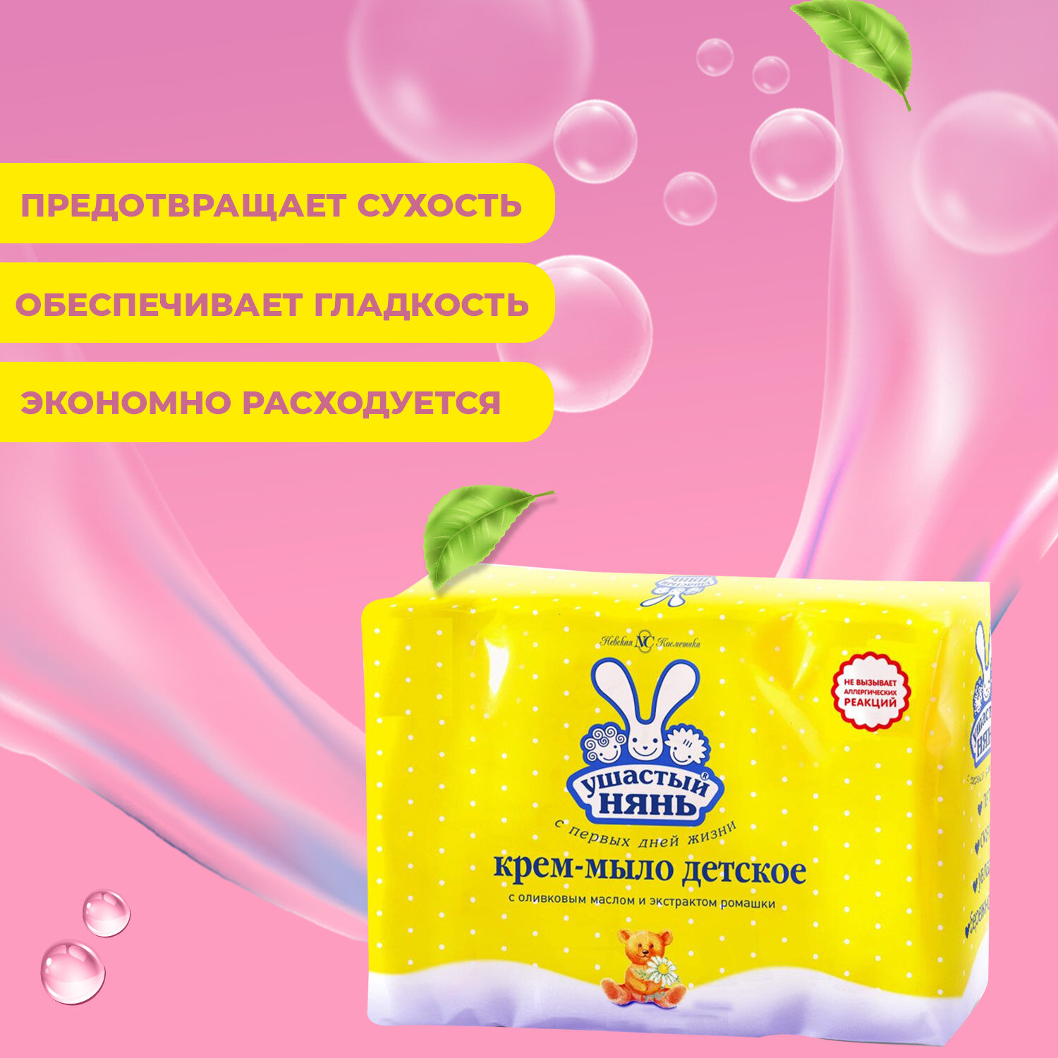Невская косметика Крем-мыло Ушастый нянь с оливковым маслом и экстрактом ромашки 90 гр