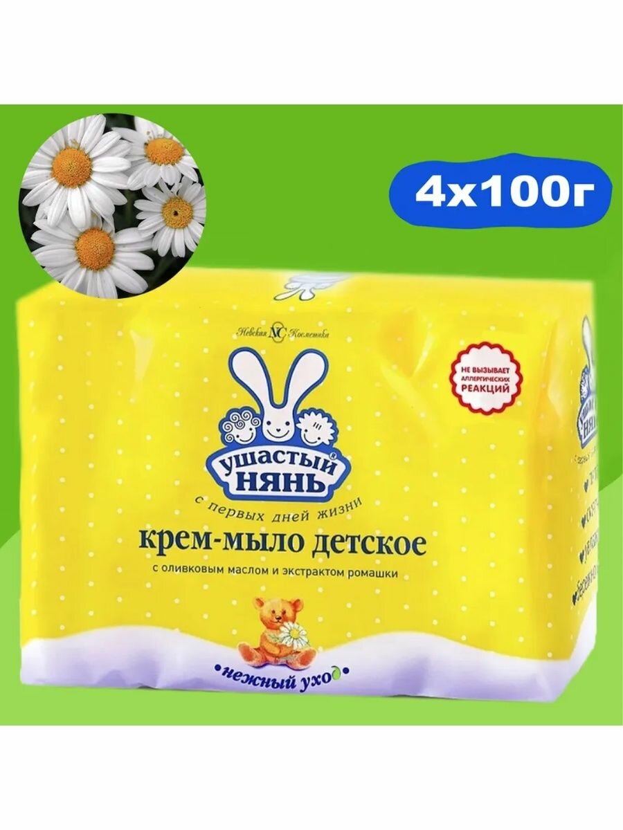Ушастый нянь детское крем-мыло с оливковым маслом и экстрактом ромашки 4*100г/с первых дней жизни/гипоаллергенное