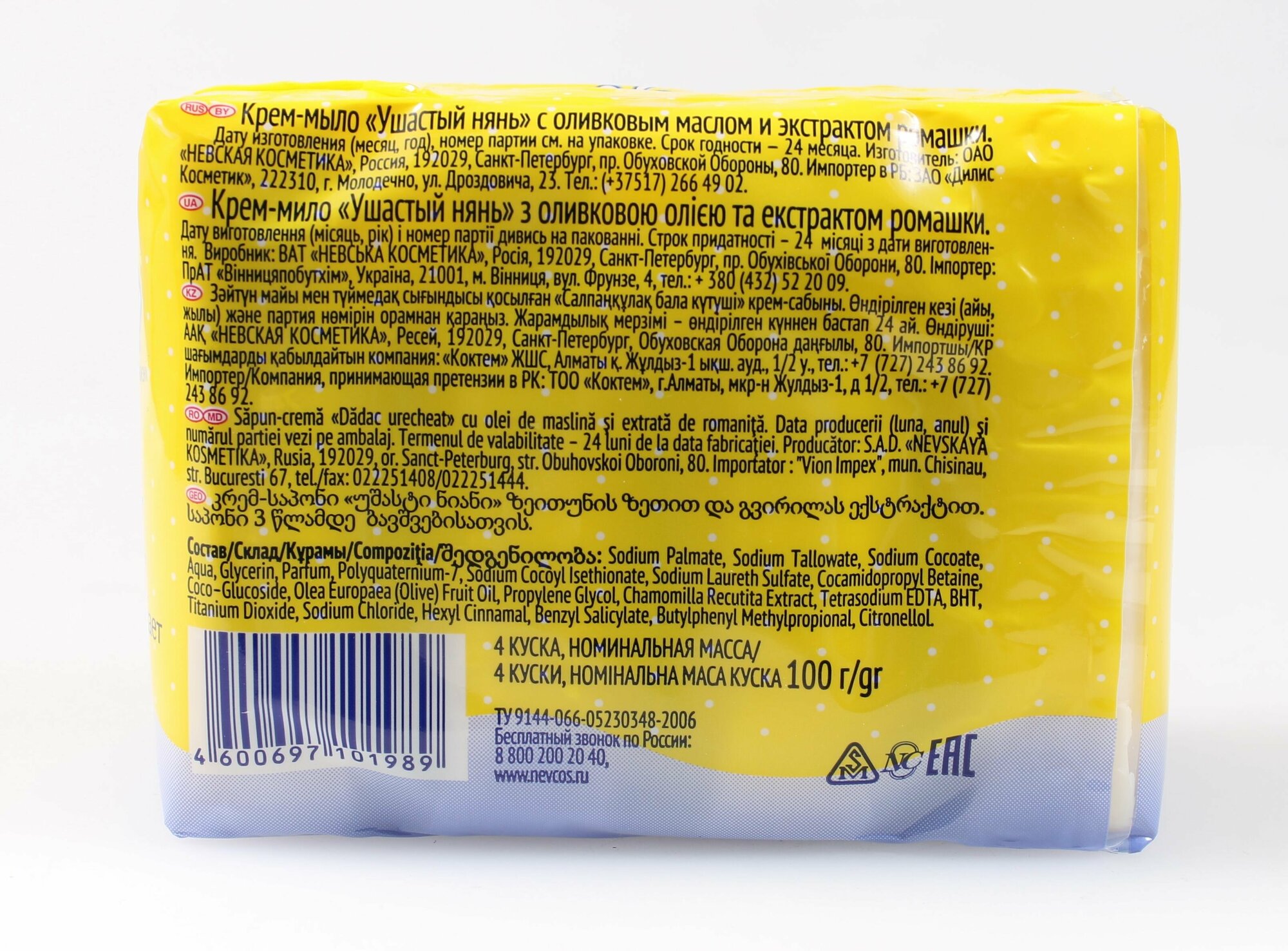 Невская косметика Крем-мыло Ушастый нянь с Оливковым маслом и экстрактом ромашки 4*100 гр