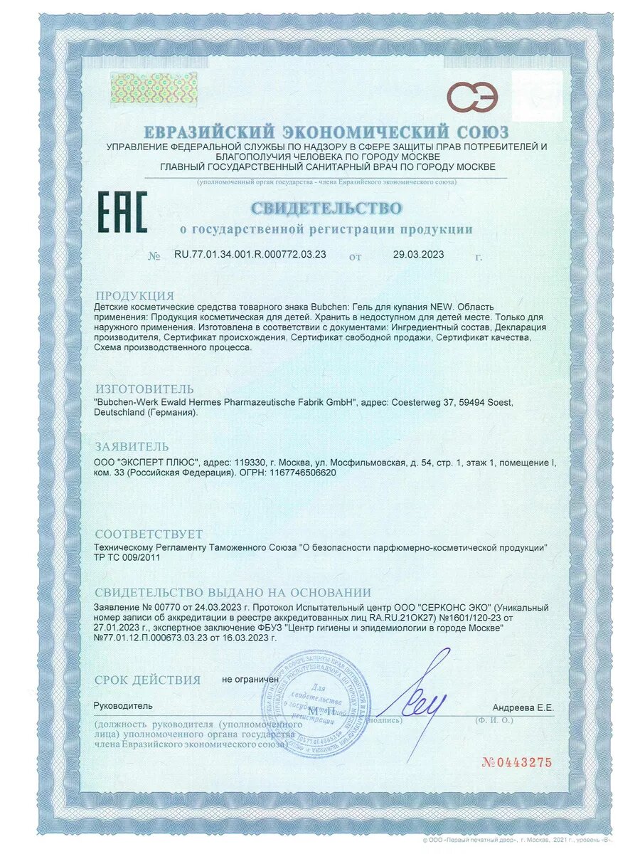 Бюбхен Гель для купания д/младенцев 400мл (12015561)