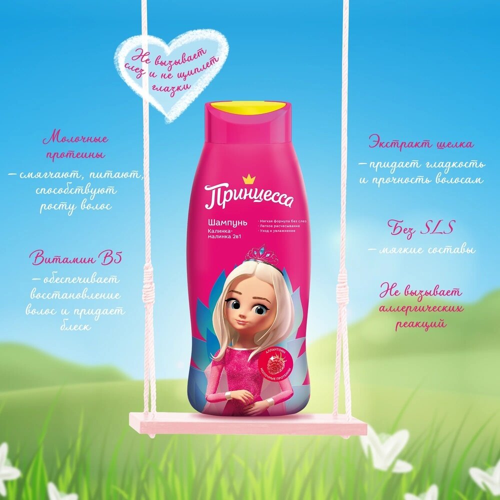 Принцесса Шампунь 2 в 1 детский «Принцесса», калинка-малинка, 400 мл