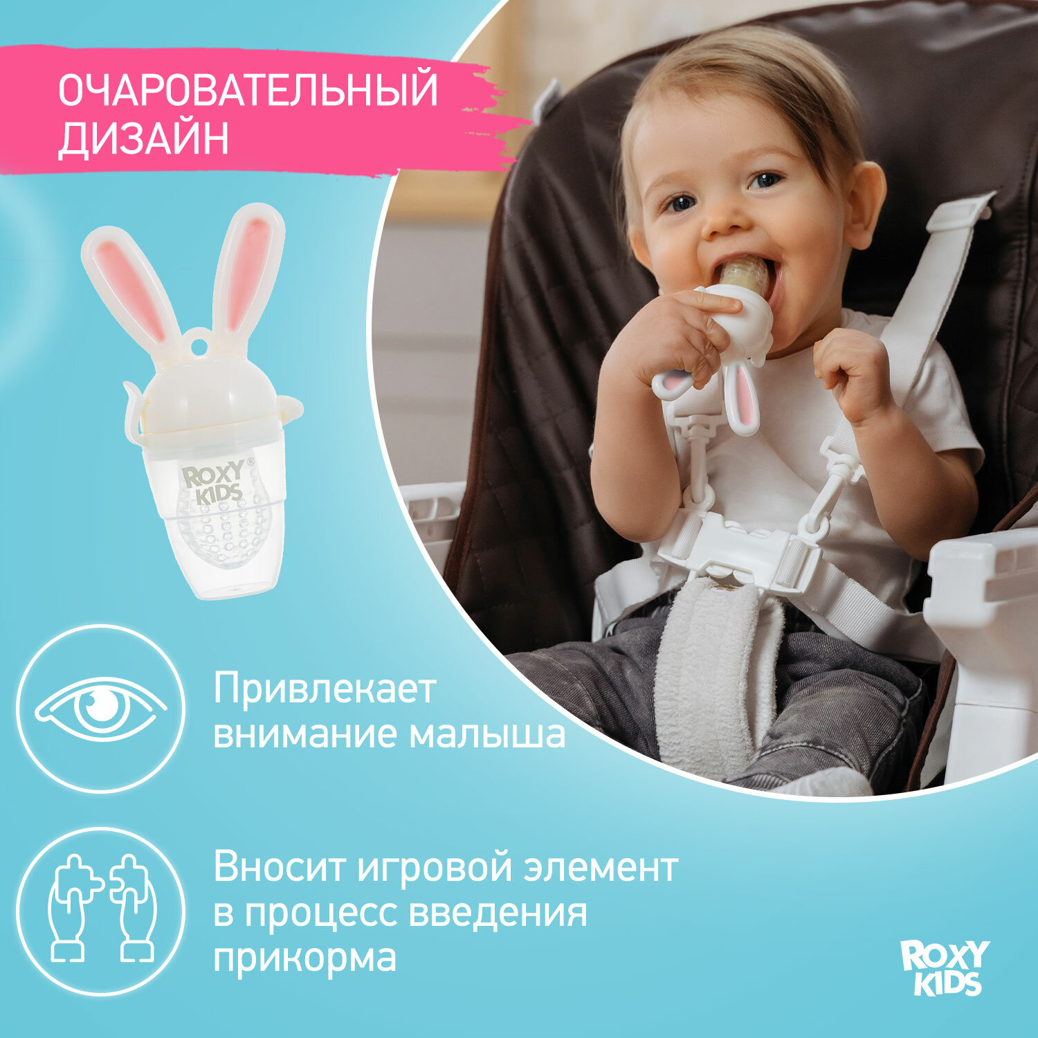 СохранитьНиблер для прикорма Roxy-Kids Bunny Twist, с силиконовой сеточкой, розовый интересное:
