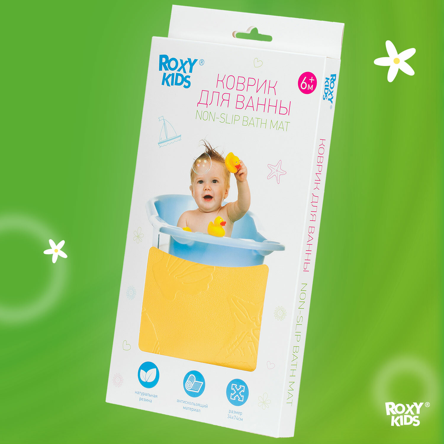 Купить Антискользящий резиновый коврик ROXY-KIDS для ванны 34х74 см цвет желтый