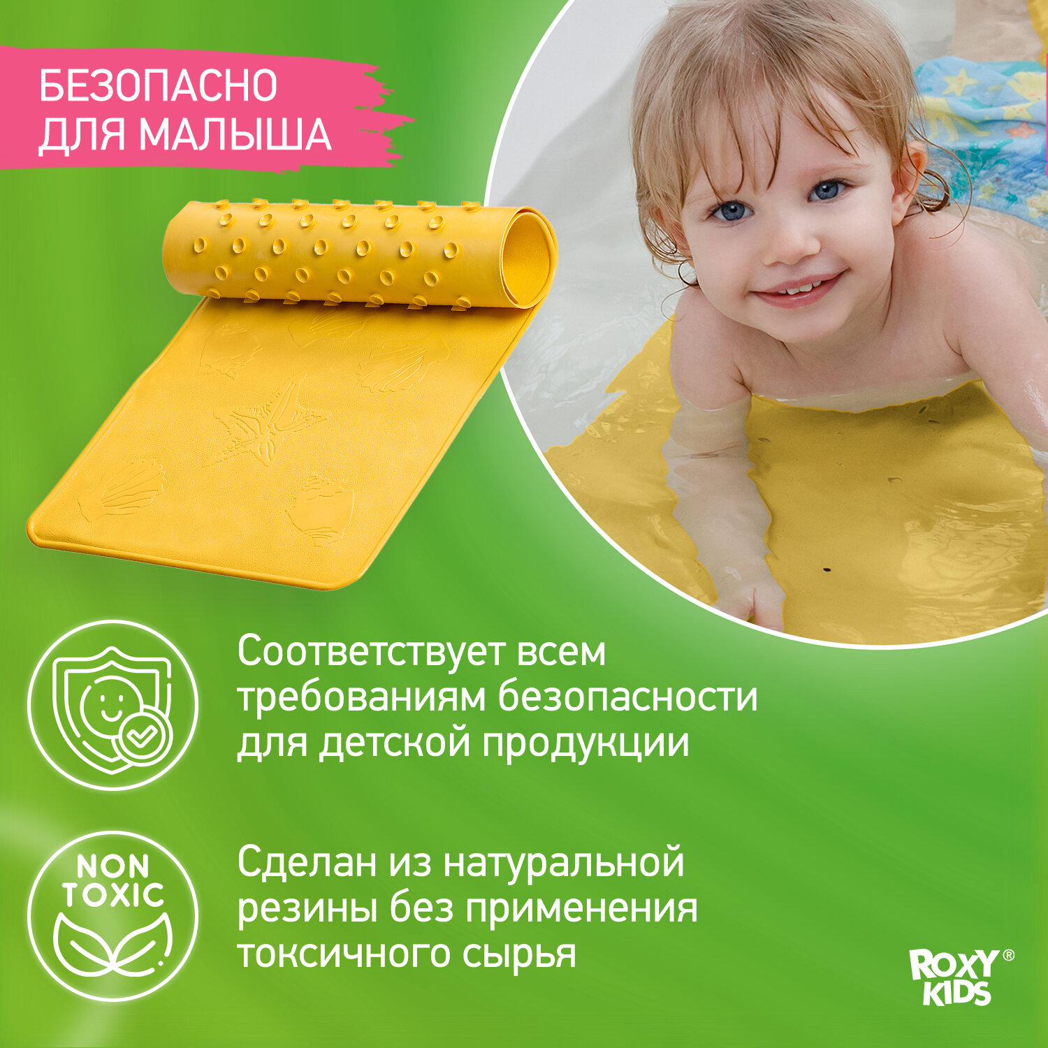 СохранитьАнтискользящий резиновый коврик ROXY-KIDS для ванны 34х74 см цвет желтый интересное: