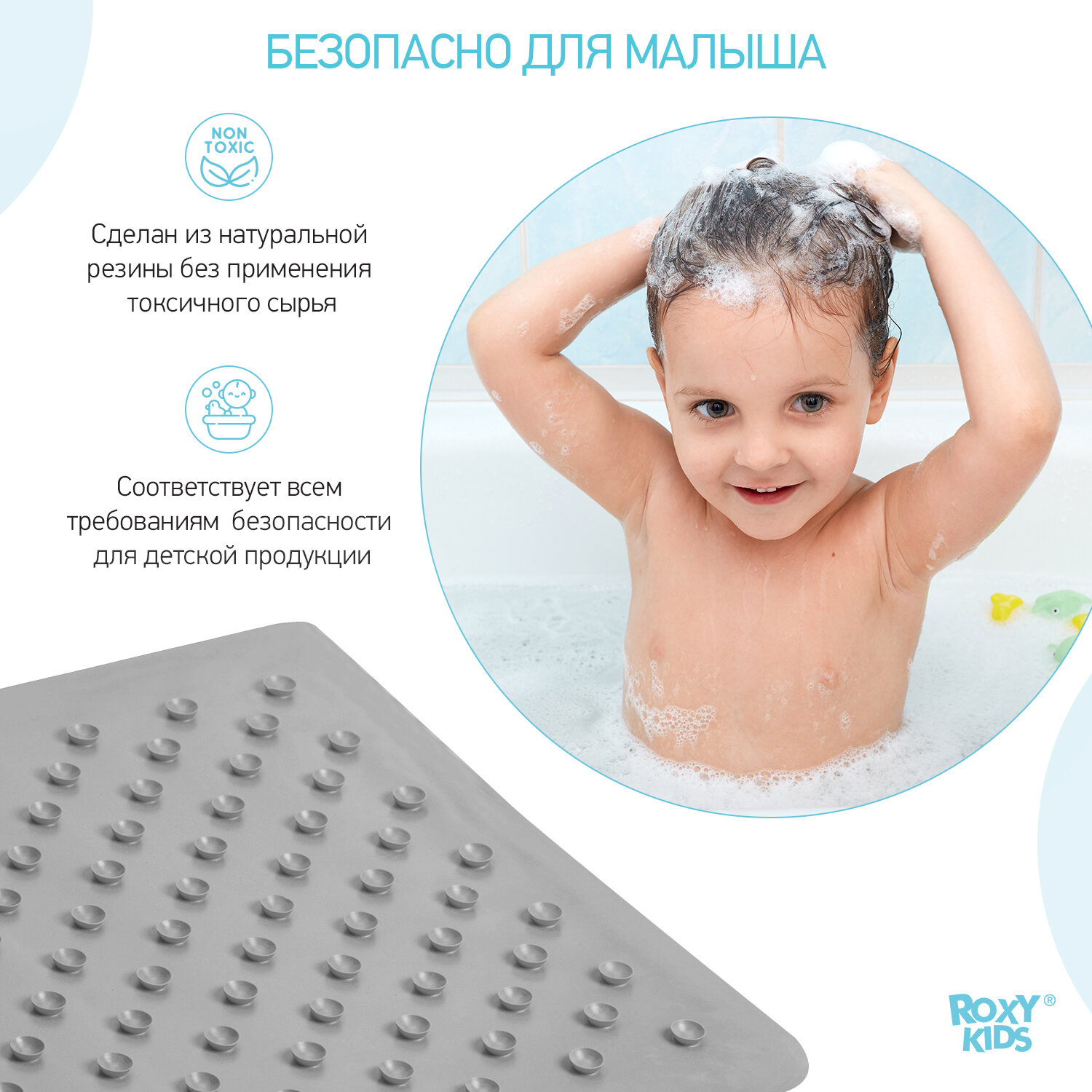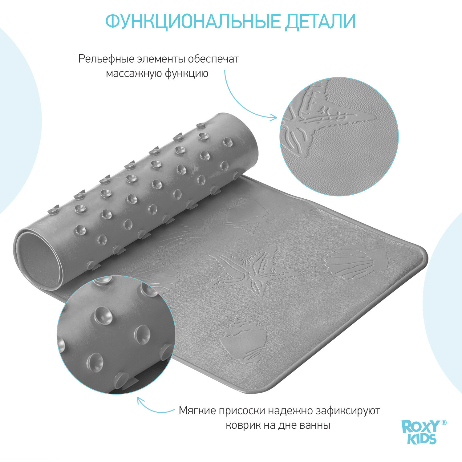 Антискользящий резиновый коврик ROXY-KIDS для ванны 34х74 см цвет серый