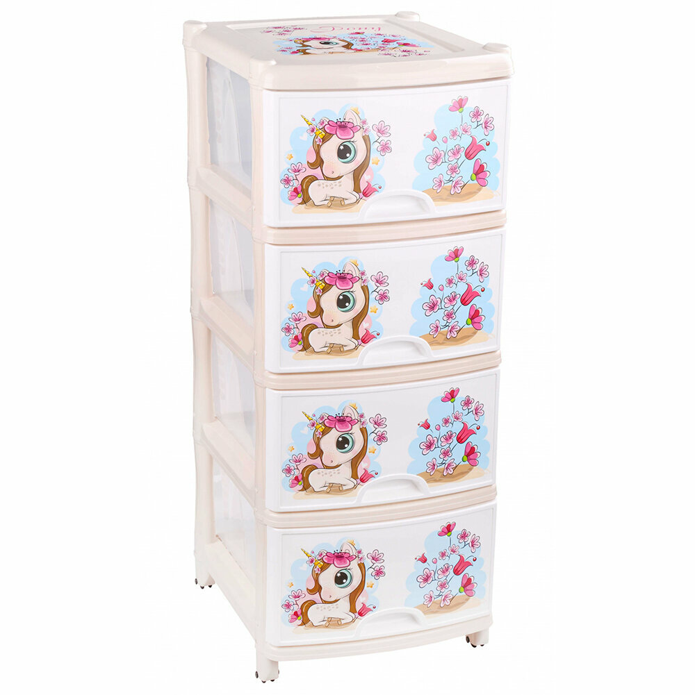 Комод детский 4 ящика, Единорог, 38х48х98 см, Альтернатива, для девочек, М1240