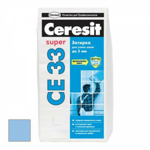 затирка для швов CERESIT СЕ 33 Super 1-6мм 2кг голубая, арт.2092750