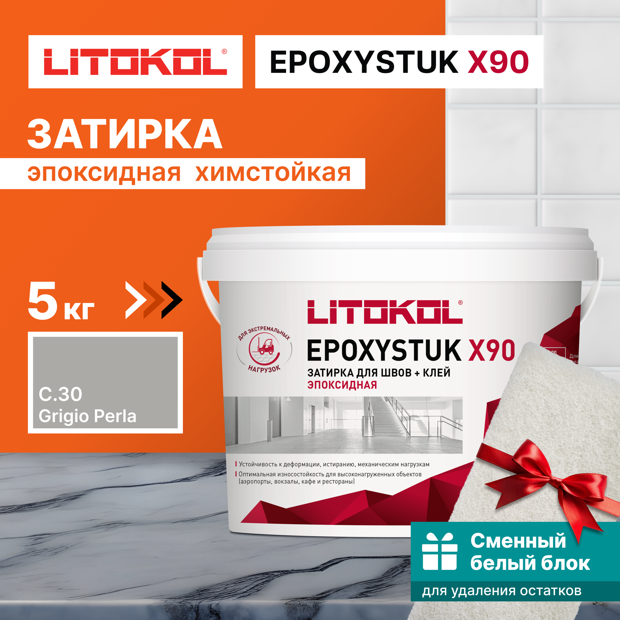 Эпоксидная затирка LITOKOL EPOXYSTUK X90 (литокол эпоксистук Х90) C.30 (жемчужно-серый), 5 кг