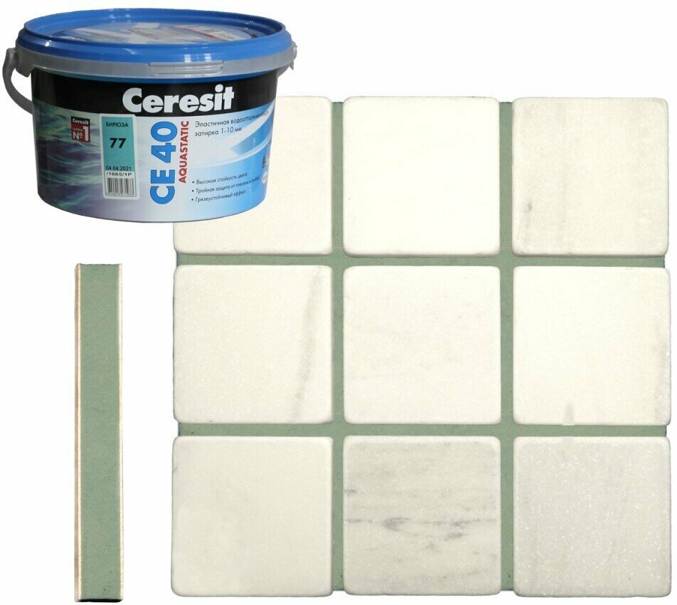 СохранитьЦерезит СЕ 40 затирка водоотталкивающая №77 бирюза (2кг) / CERESIT CE-40 Aquastatic эластичная затирка водоотталкивающая противогрибковая интересное: