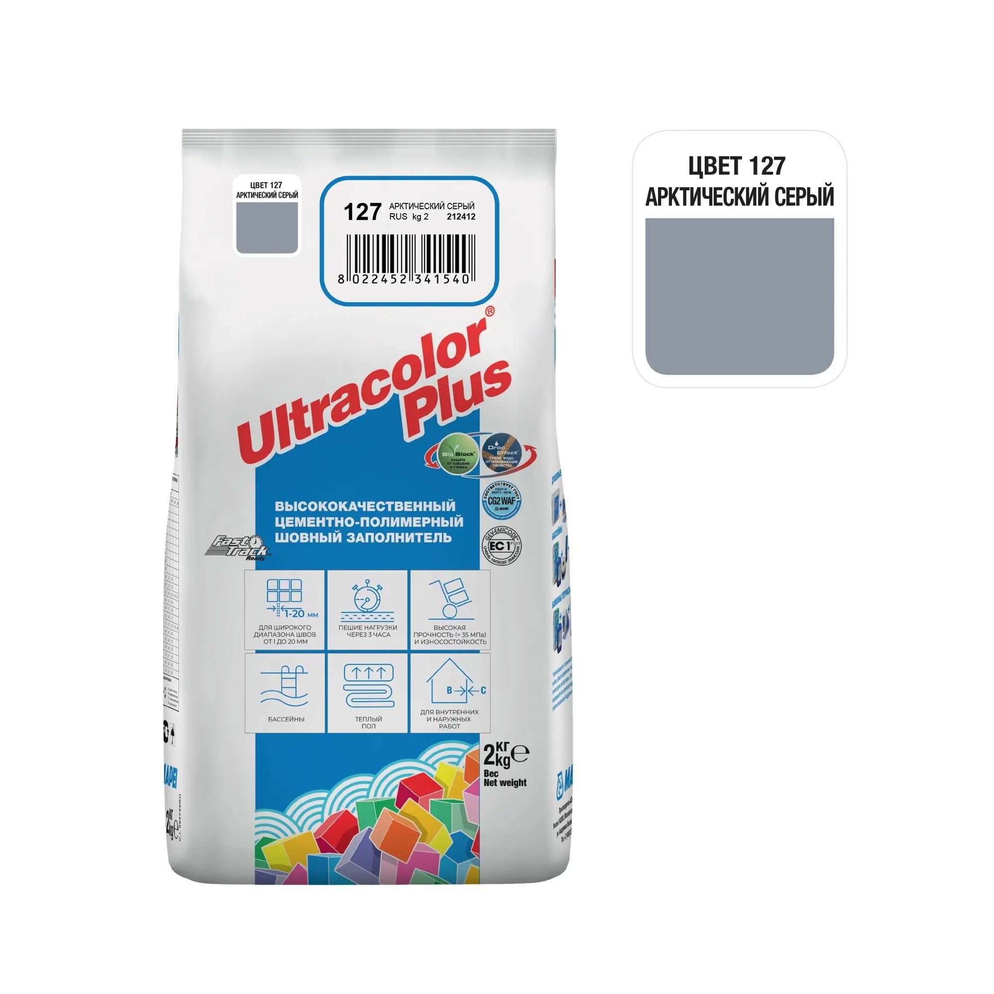 Купить Затирка Mapei Ultracolor Plus 127 Арктический серый, 2 кг