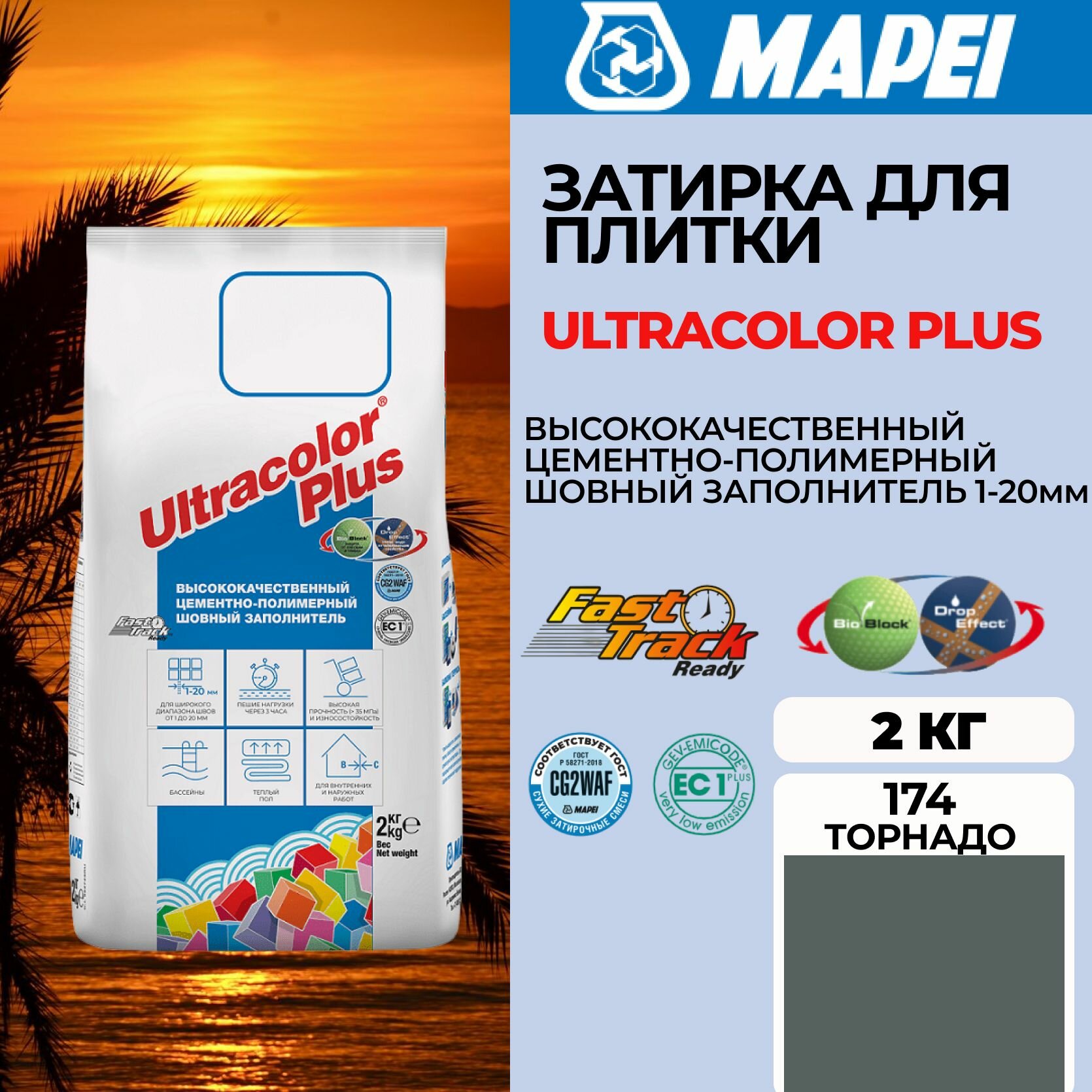 Купить Затирка Mapei Ultracolor Plus 174 Торнадо, 2 кг