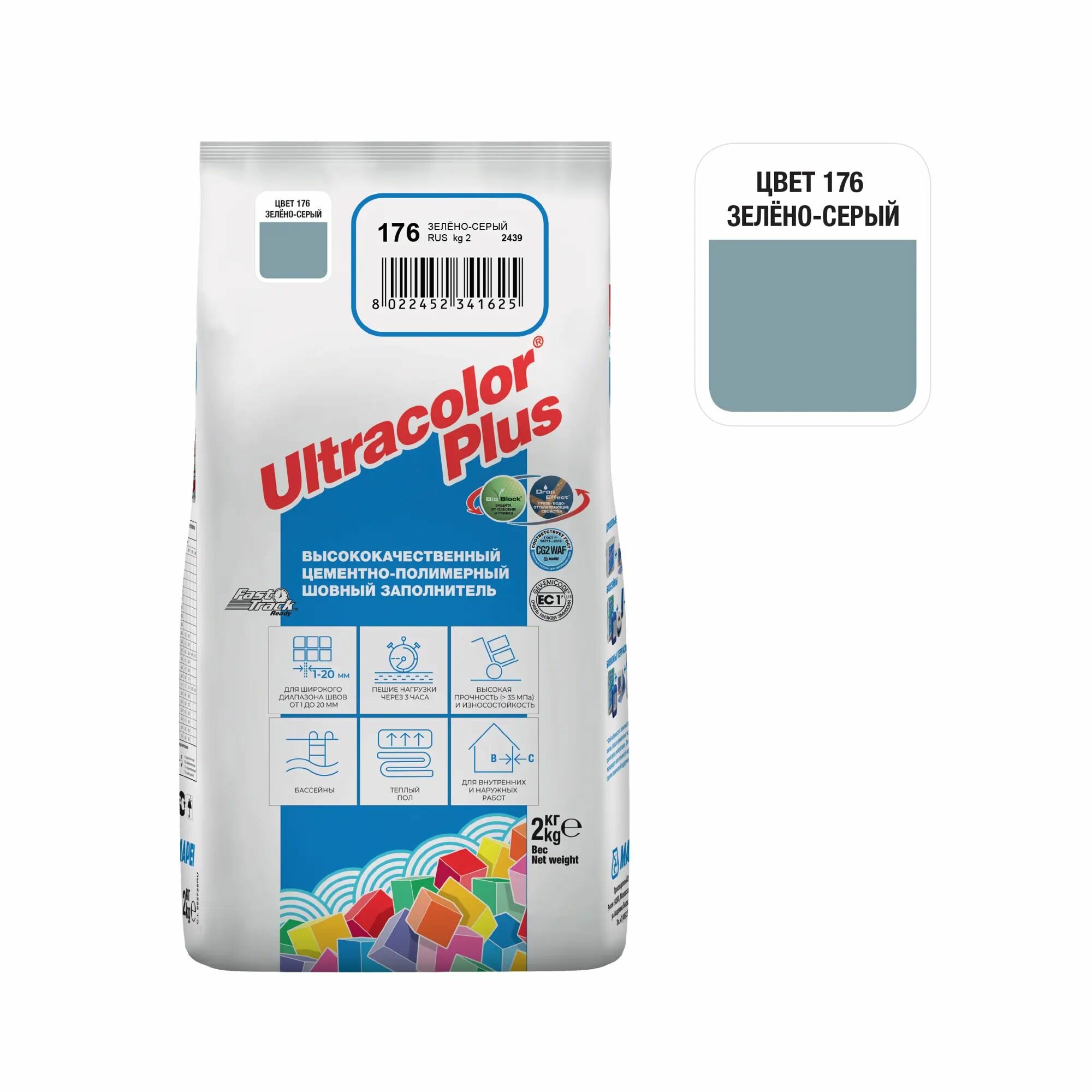 Купить Затирка Mapei Ultracolor Plus 176 Зелёно-серый, 2 кг